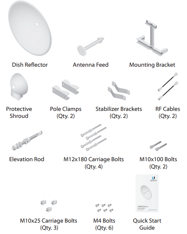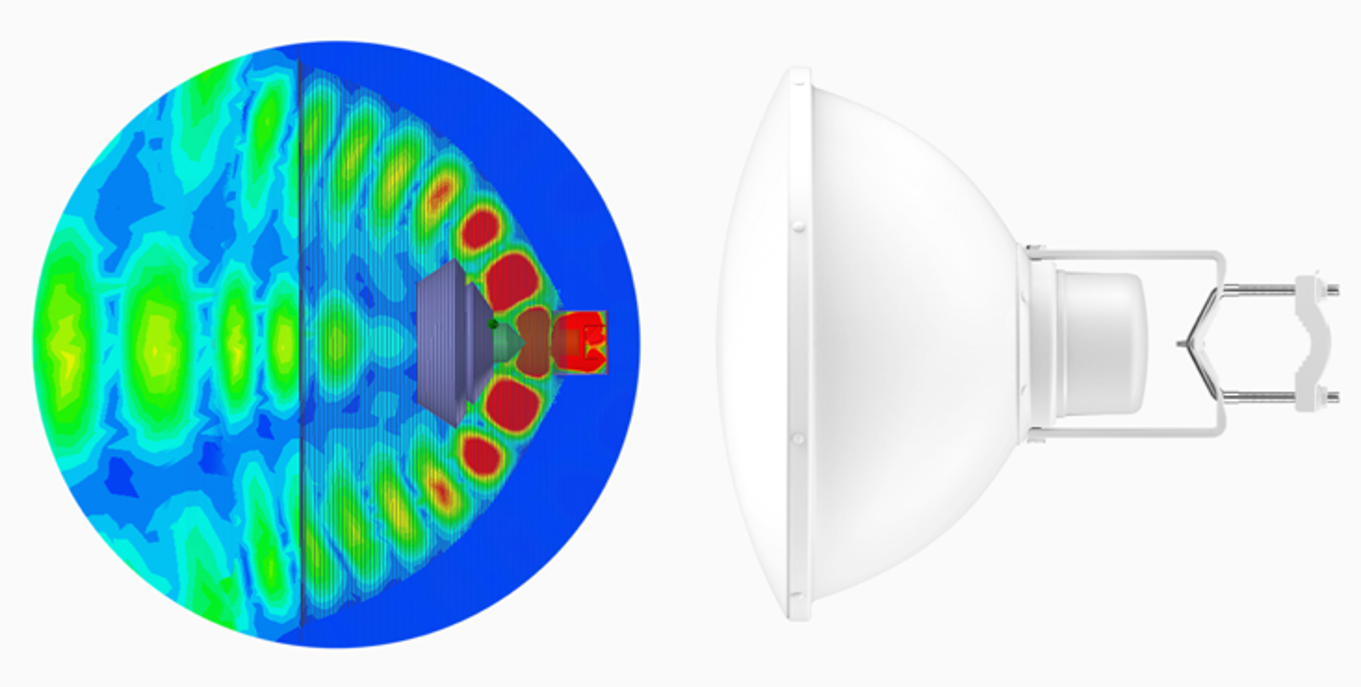 Ganancia: 4.9 GHz: 30 dBi, 5 – 5.8 GHz: 34 dBi