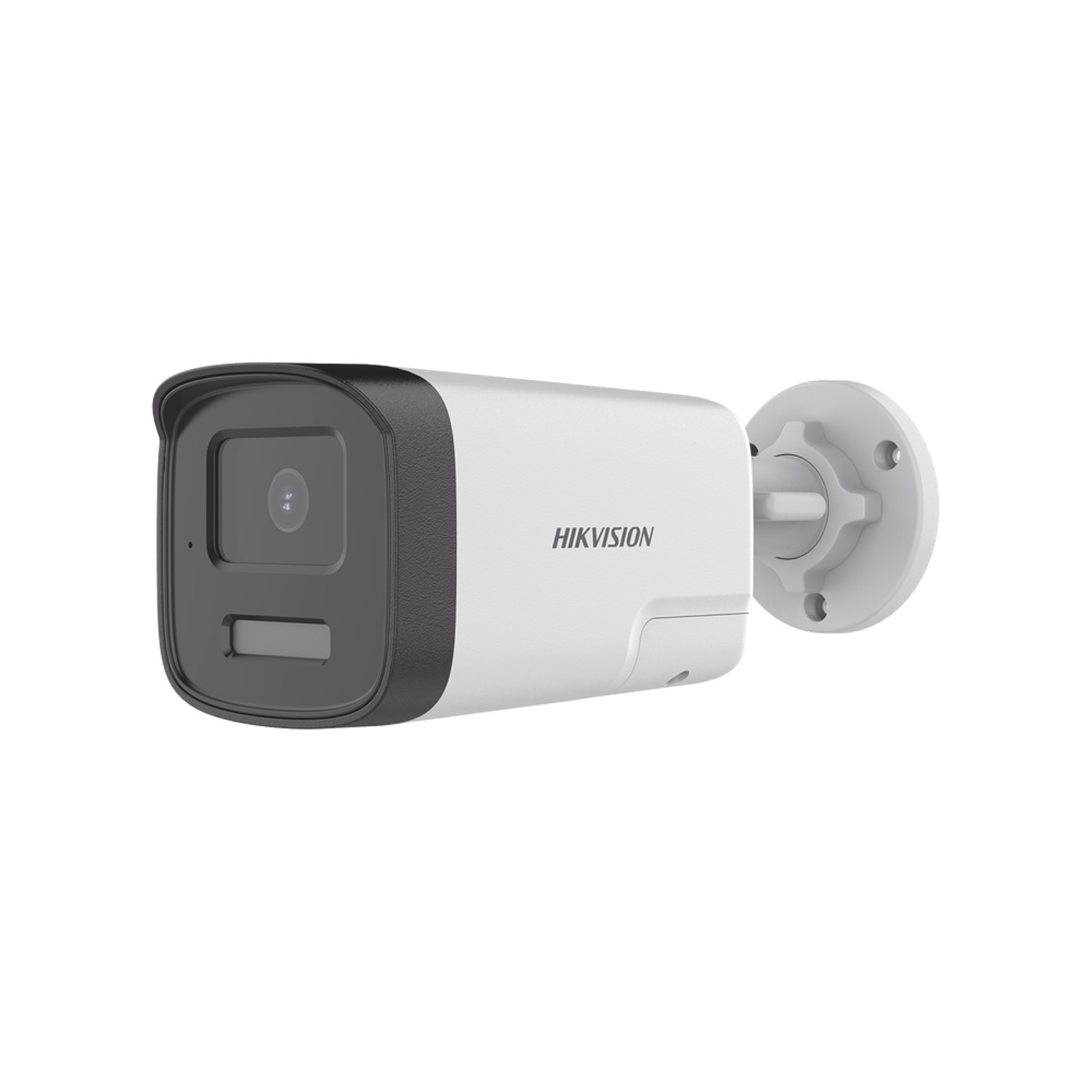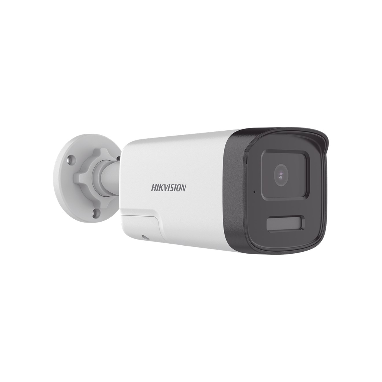 - La cámara cuenta con un micrófono y bocina interconstruido, el cual no requiere cables adicionales para poder transmitir el audio y video. Podemos tener una comunicación bidireccional desde la App (Hik-Connect) usando el DVR de por medio para la interconexión.