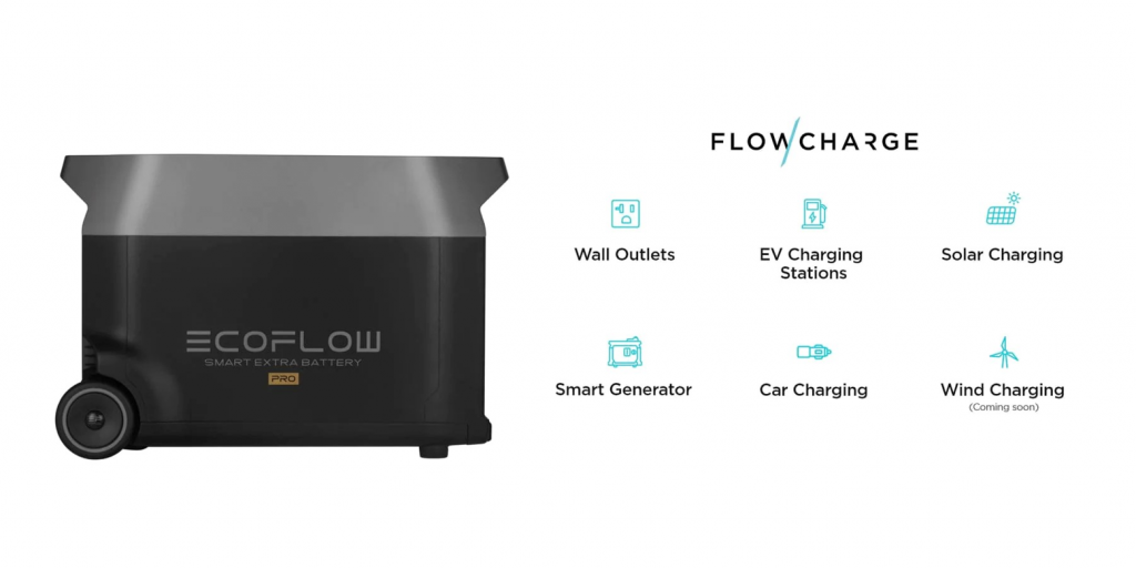 La batería adicional inteligente EFD500EB se beneficia de todos los métodos de carga que tiene DELTA Pro. Esto significa que puedes cargar en cualquier momento, en cualquier lugar, siempre y cuando tu batería adicional esté conectada al DELTA Pro. Una vez conectadas, cargarán y descargarán al unísono, manteniendo el nivel de batería en porcentajes óptimos en ambas unidades.