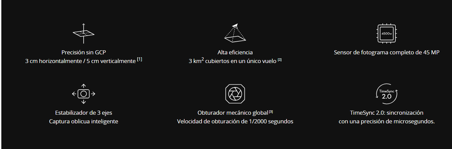 – TimeSync 2.0 alinea la cámara, el controlador de vuelo, el módulo RTK y el estabilizador con una precisión de microsegundos.