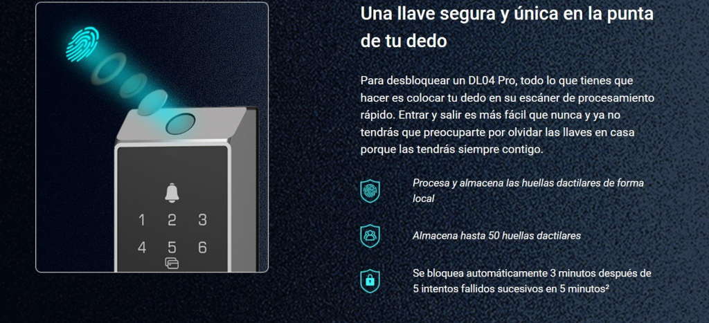 - Método de desbloqueo múltiple (huella digital / contraseña / tag / llave).