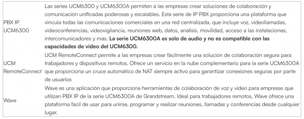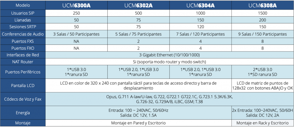- La PBX IP UCM6300 admite hasta 1500 usuarios y hasta 200 llamadas concurrentes