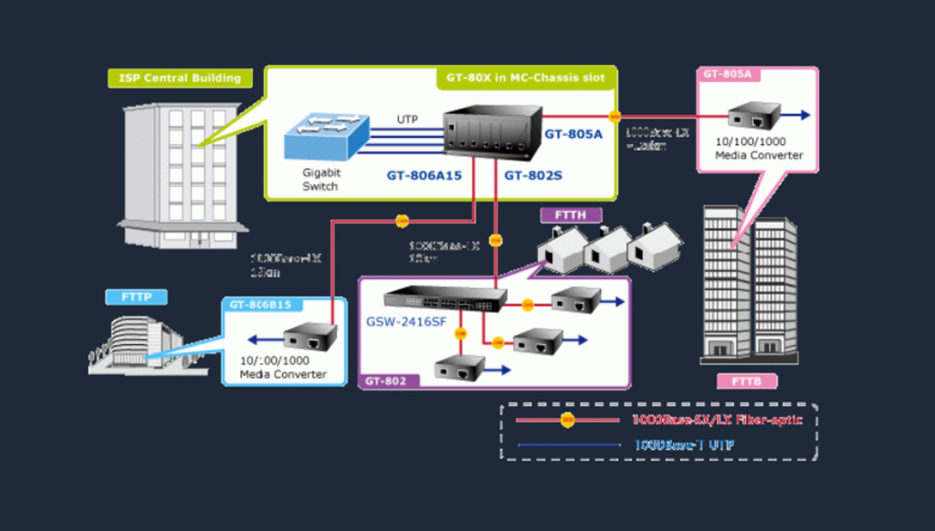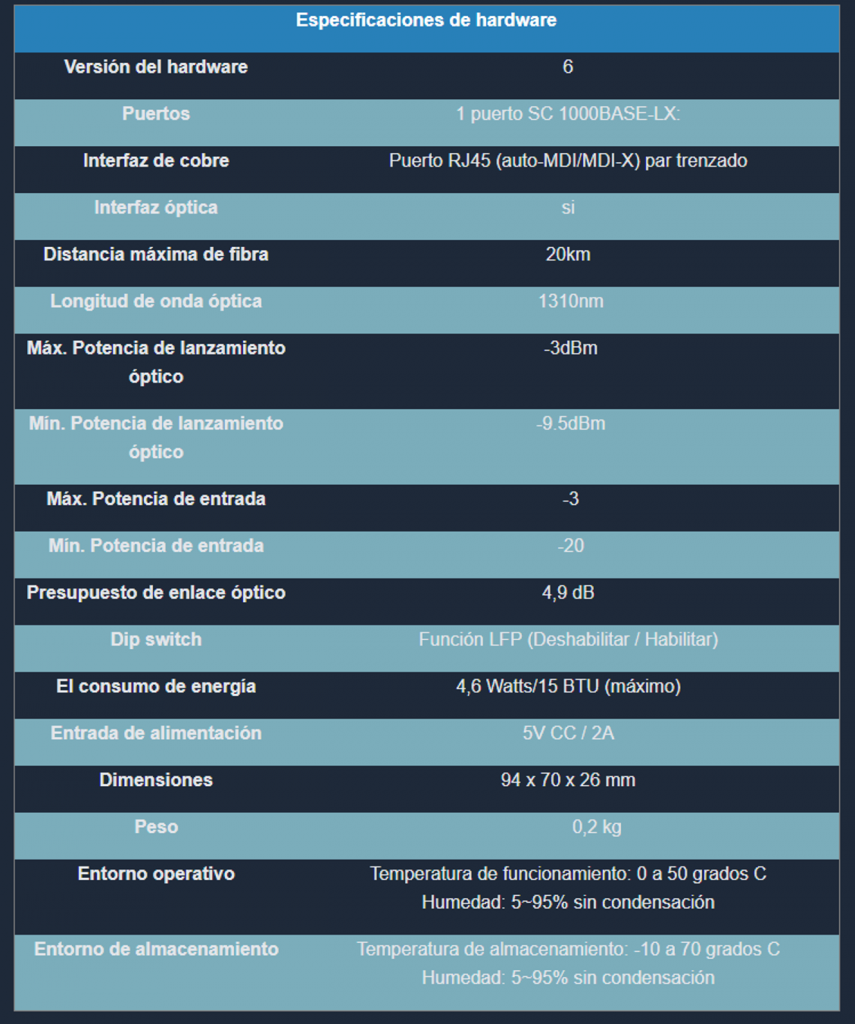 Convertidor de Medios 1000 Mbps UTP Fibra Óptica