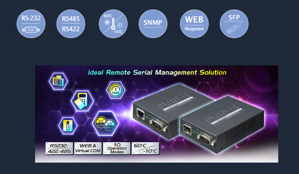 Está especialmente diseñado para convertir la comunicación serial RS232, RS422 o RS485 a una red Fast Ethernet para extender la distancia de la red de manera eficiente y económica.