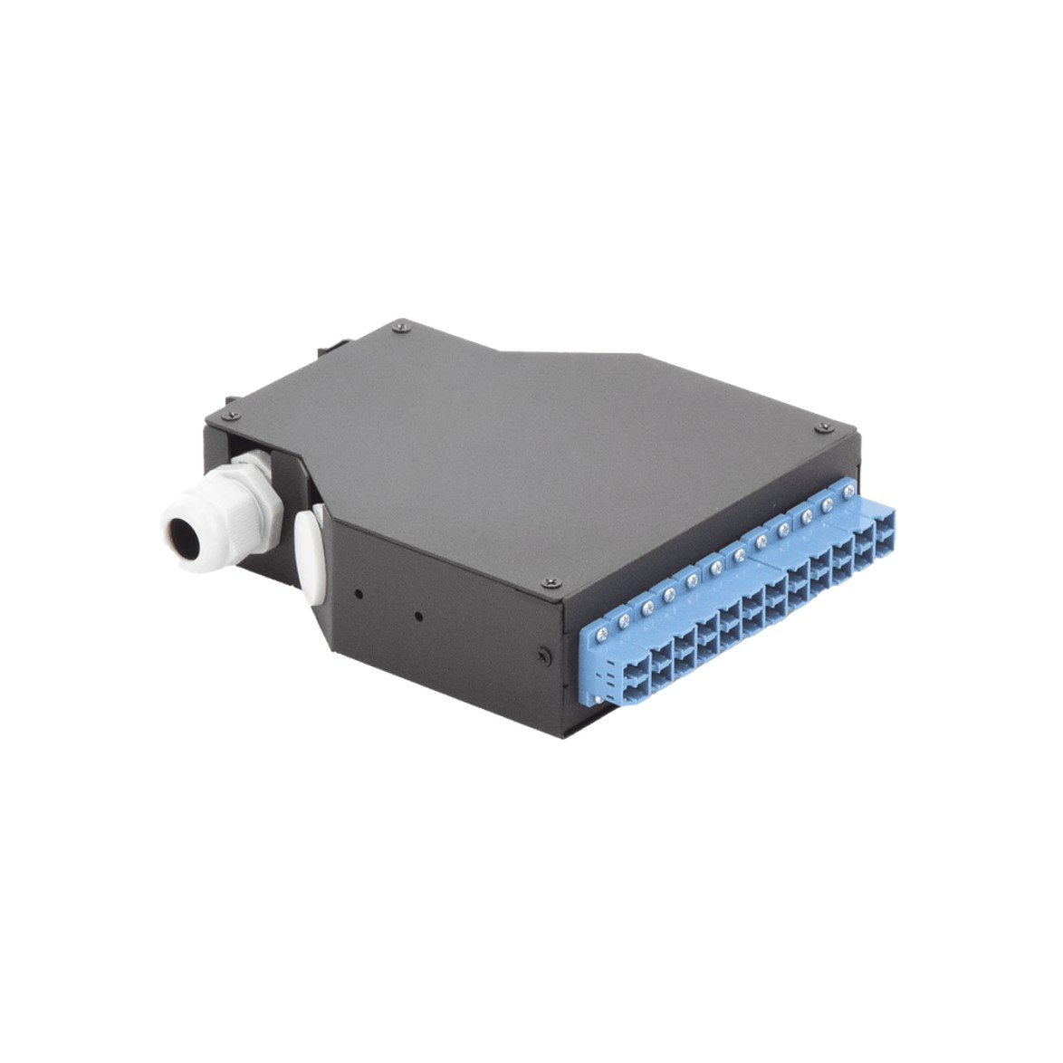 Distribuidor de Fibra Óptica Para Riel Din, 12 acopladores LC/UPC Duplex Monomodo con Charola de Empalme