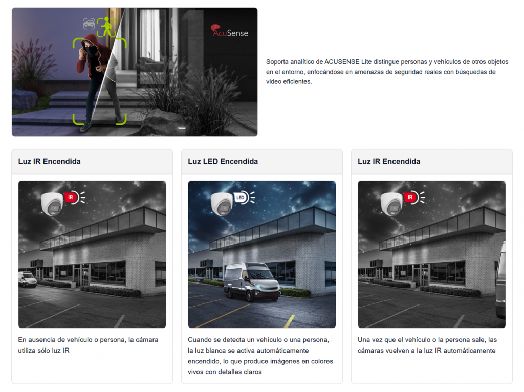 - Iluminación mínima (B/N): 0 Lux con IR
