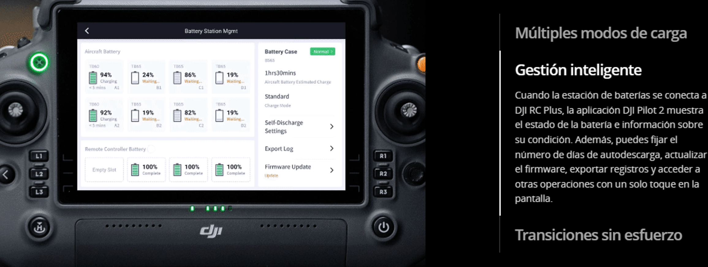 Equipado con una pantalla de alto brillo de 7 pulgadas, DJI RC Plus admite el modo de doble operador e incluye una batería estándar WB37 externa que ofrece un tiempo de funcionamiento de hasta seis horas para cubrir todos tus requisitos de uso.