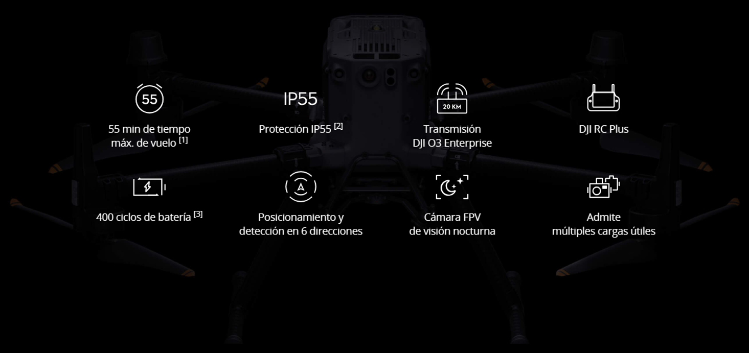 El Matrice 350 RTK, una emblemática plataforma dron rediseñada, establece un nuevo punto de referencia para la industria. Esta plataforma dron de última generación ofrece un sistema de transmisión de vídeo y una experiencia de control totalmente nuevos, un sistema de batería más eficiente y funciones de seguridad más completas, así como grandes capacidades de carga útil y de expansión. Dispone de toda la potencia necesaria para inyectar fuerza innovadora a cualquier operación aérea.