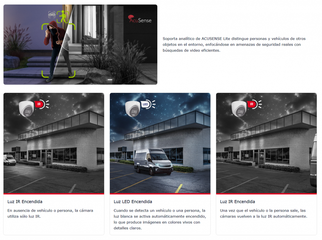 • Detección inteligente Acusense para personas y vehículos