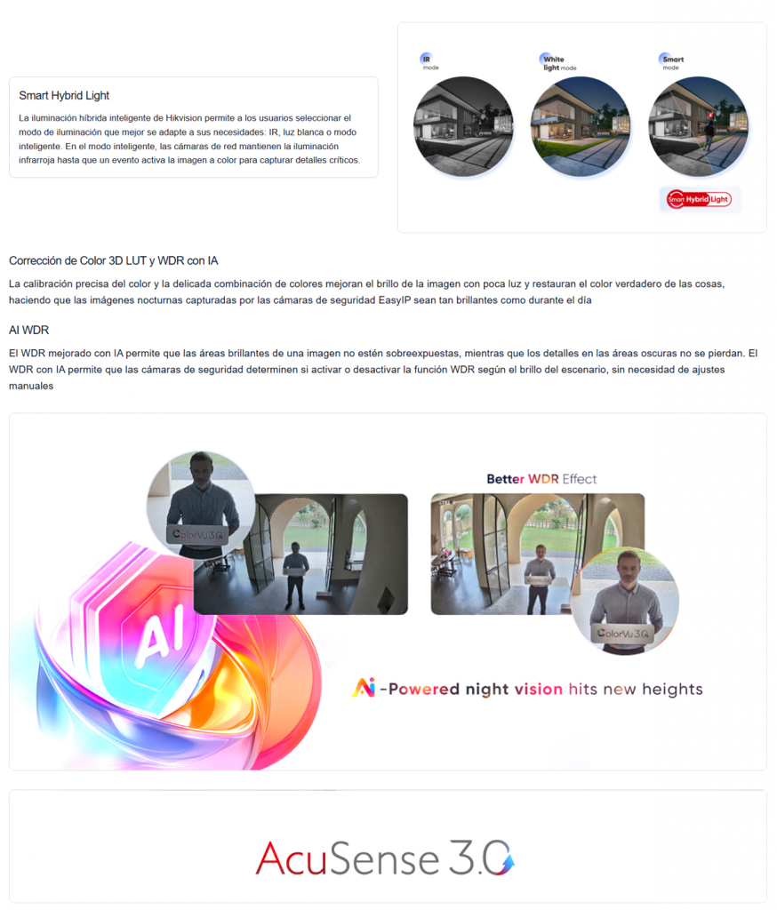 • 60 m de luz blanca (ayuda a iluminar el sitio para mantener la imagen siempre a color)