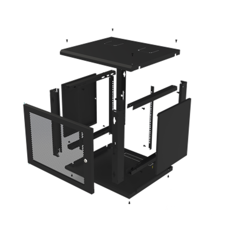 - Cuerpo metálico (tapas, laterales, postes racks)