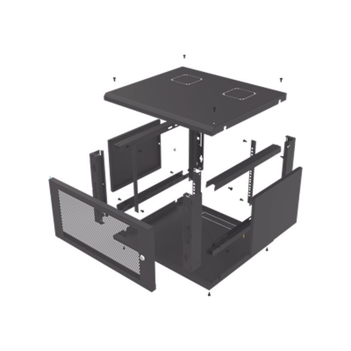 - Cuerpo metálico (tapas, laterales, postes racks)