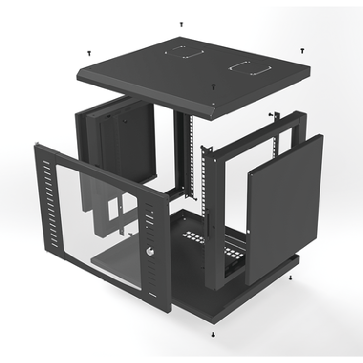 - Cuerpo metálico (tapas, laterales, postes racks)