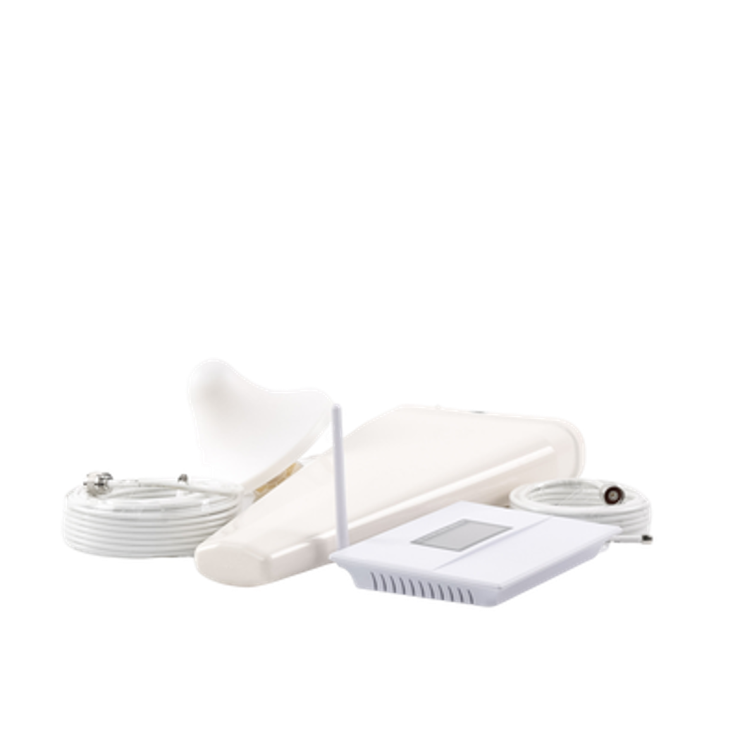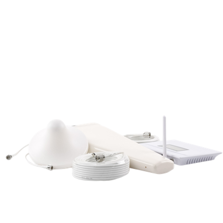 El kit incluye todo lo nencesario para su funcionamiento; amplificador, fuente de alimentación, antena exterior (donadora), antena interior (de servicio) y un par de jumpers coaxiales de 20 m y 5 m. Adicional puede considerar el mástil SMRP-150-CF para la antena exterior y un montaje TX-ML-DOM o TX-MZ-DOM para la antena interior.