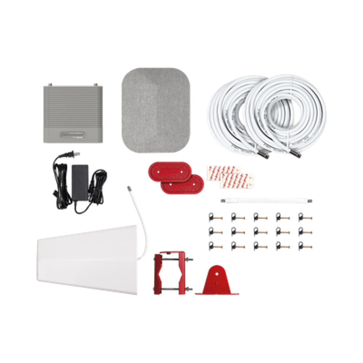 Cada amplificador viene con todo lo que necesita para una instalación completa, que incluye una antena interior, una antena exterior, cables coaxiales y una fuente de alimentación.