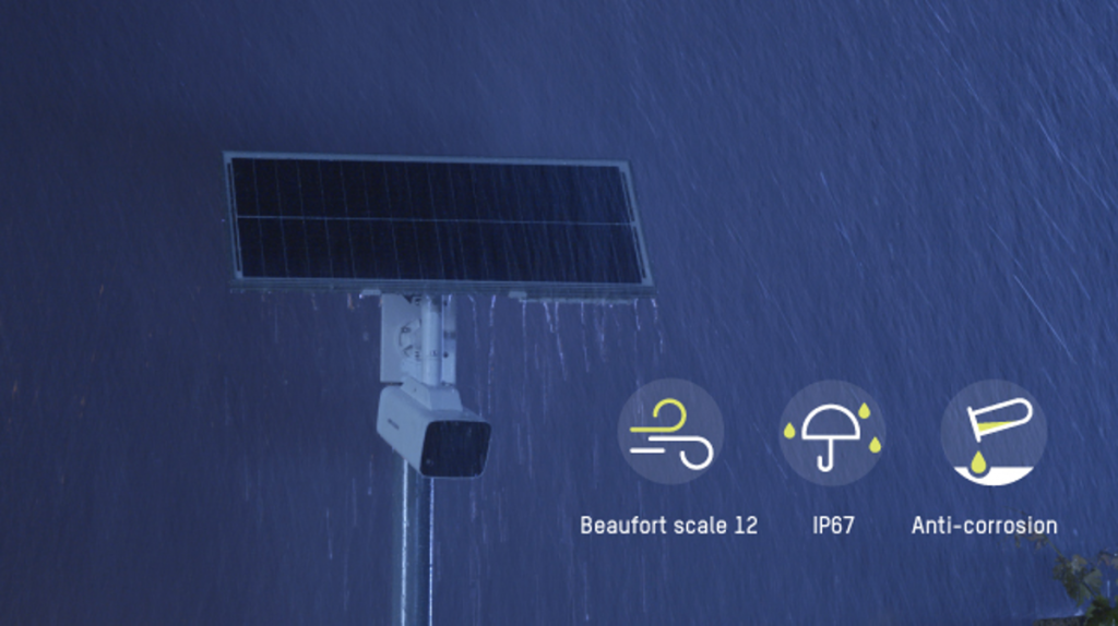 - Incluye: cámara, panel solar, batería de respaldo, montaje de poste, brazo para camara y panel.