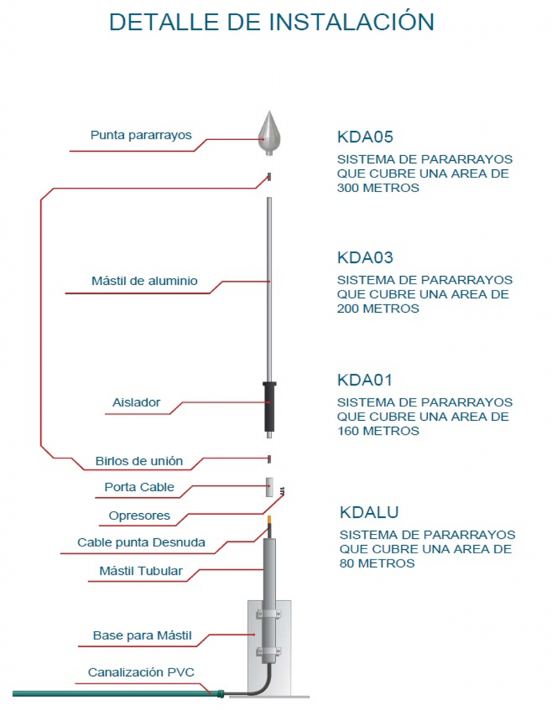 1 | KDA03PUNTA | Punta pararayos KDA03 para protección de 100 m de radio (sin venta individual). |