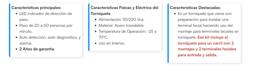 - Torniquete Central para ampliar carriles por separado.