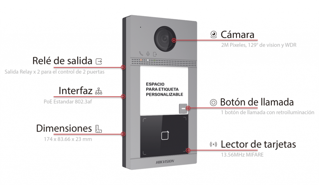Potencia la seguridad de tu hogar o negocio con nuestro videoportero IP que te permite ver y comunicarte con tus visitantes desde cualquier lugar. ¿Necesitas abrir la puerta mientras estás fuera? ¡No hay problema! Nuestra aplicación Hik-Connect te permite realizar aperturas remotas de manera conveniente.