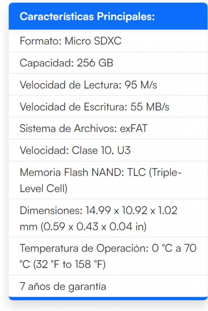 Alta Compatibilidad: Compatible con dispositivos microSDXC y adaptable a tamaño estándar con un adaptador SD.