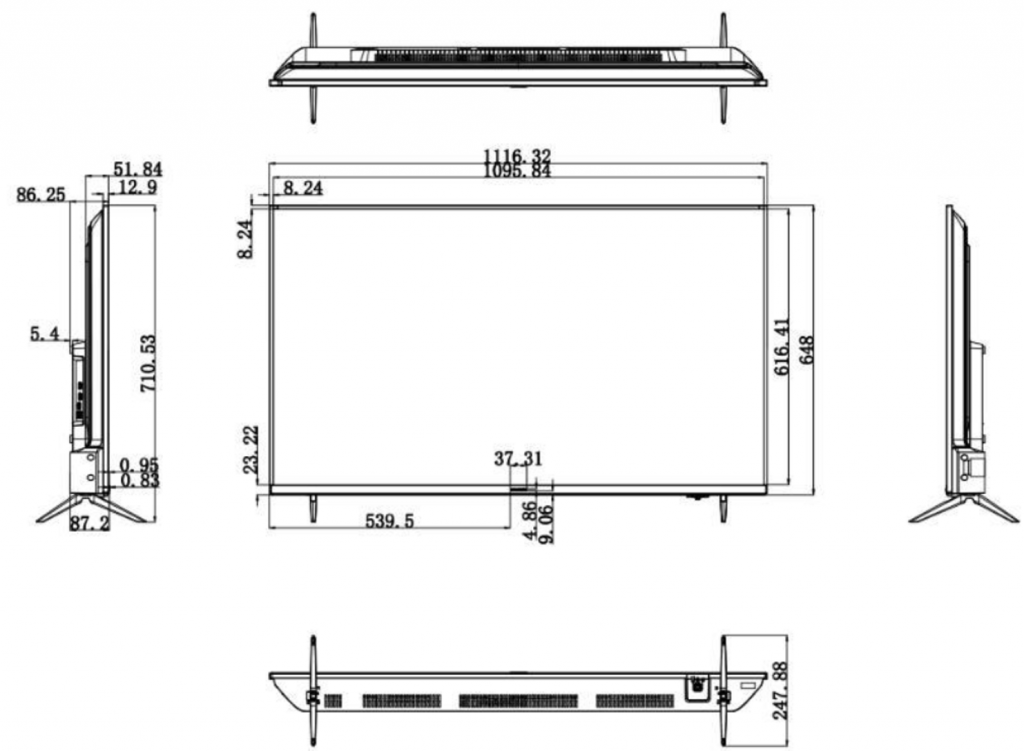 - Dimensiones sin soportes de mesa: 1116.32 x 648 x 87.2 mm