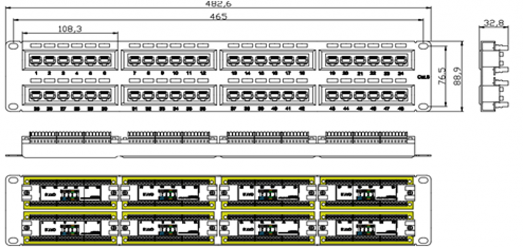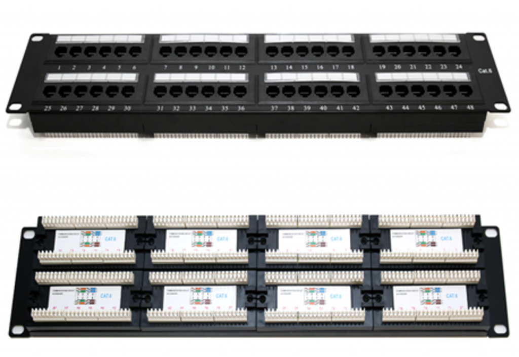 Panel de parcheo LINKEDPRO de impacto (110) UTP de 48 puertos Cat6, 19in, 2U, con barra para organizar cable
