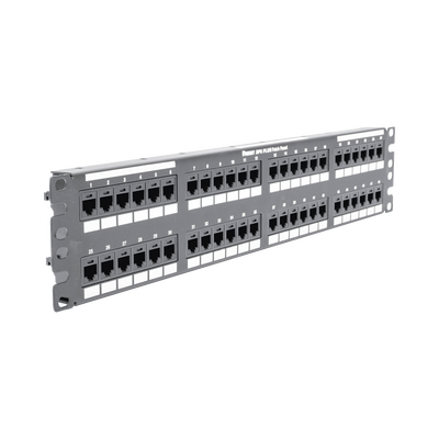 Los paneles de conexión de impacto Categoría 6/Clase E, se deben terminar con cables de par trenzado sin blindaje de 100 ohms, 22-26 AWG, de 4 pares con una herramienta de impacto 110. Los paneles de conexión deben incluyen una etiqueta universal codificada para los esquemas de cableado T568A y T568B y montarse en Racks o Gabinetes de 19in. Los paneles de conexión son fáciles de identificar con números preimpresos, áreas de escritura y kits de etiquetas opcionales.