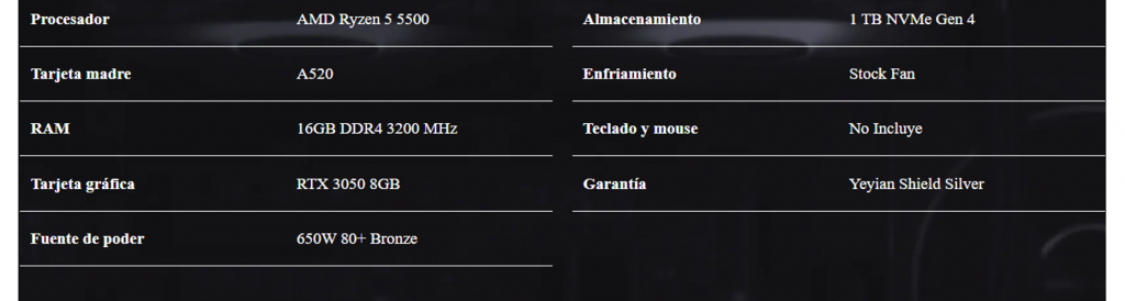 PC GAMER YEYIAN VAULT RYZEN 5 16GB 1TB