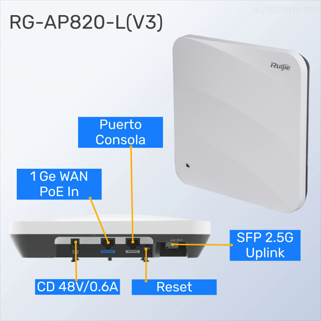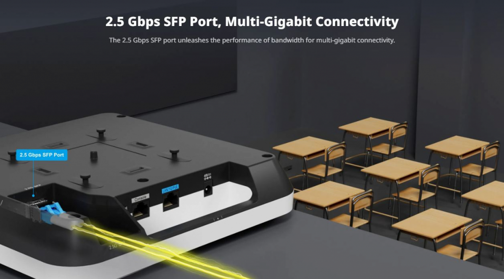• Puertos: 1 puerto WAN PoE In, 1 puerto SFP 2.5G LAN.
