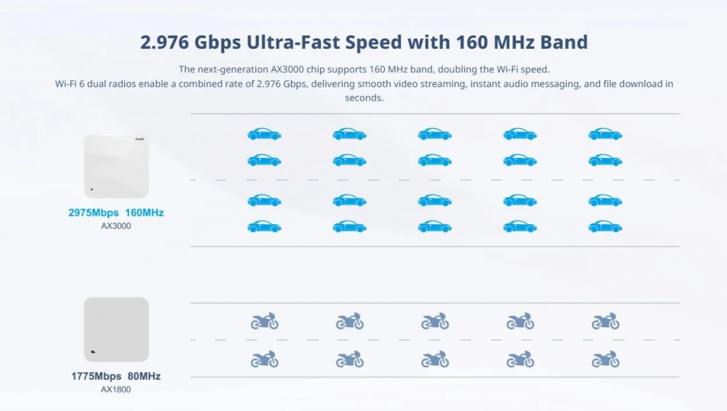• Estándar: 802.11ax (Wi-Fi 6). Soporta conexión de dispositivos de estándares anteriores.