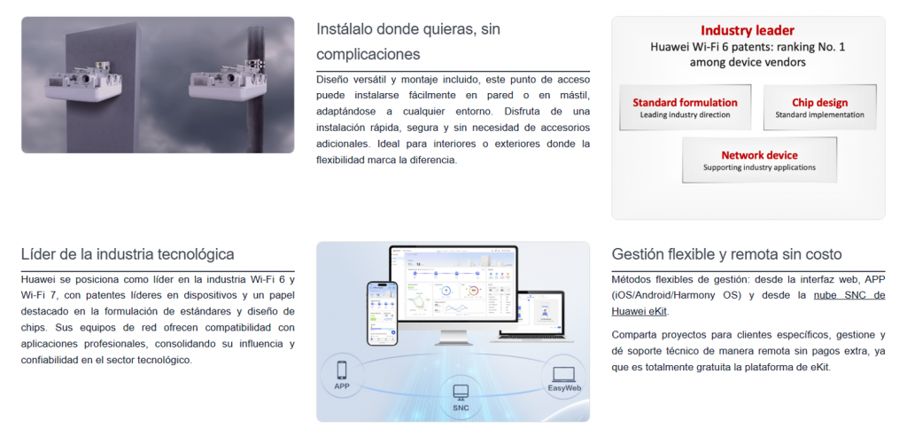 - Gestión: interfaz web, CLI, nube, APP o controladora física