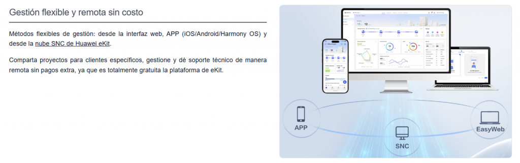 - Gestión: interfaz web, CLI, nube, APP o controladora física