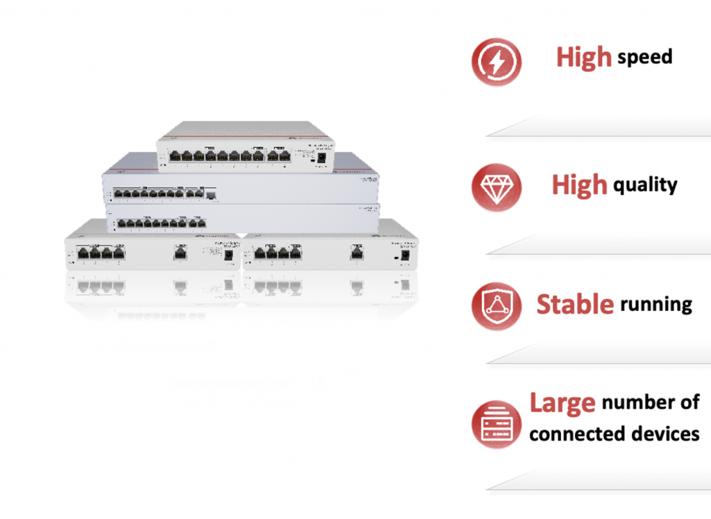 El Router Huawei eKitEngine S380 es una puerta de enlace multiservicio con 8 puertos Gigabit (PoE) y puertos uplink GE. Ofrece instalación sencilla, despliegue rápido y red Ethernet flexible, ideal para PYMES, oficinas, hoteles, escuelas y sistemas de seguridad en interiores.