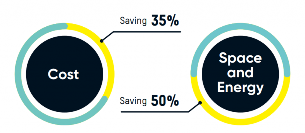 La solución de Hikvision ocupa menos espacio en la sala, utiliza menos electricidad y reduce el tiempo de implementación, lo que le ahorra tiempo y dinero. En comparación con los dispositivos de almacenamiento de 8TB actuales, el HDD SMR de 20TB ahorra a los usuarios hasta un 35% del costo TB y hasta un 50% del consumo de espacio y energía por TB.