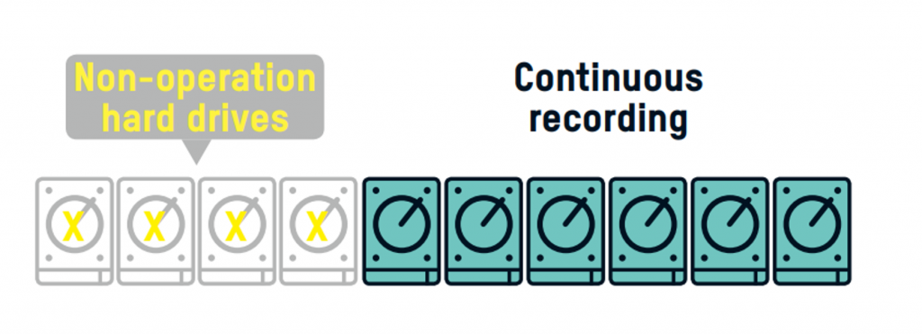 La tecnología de almacenamiento iRAID de Hikvision aumenta la seguridad de los datos. Mientras que el RAID tradicional deja de funcionar cuando fallan tres discos duros, iRAID continúa funcionando, por lo que la grabación de video continúa sin interrupciones incluso cuando fallan cuatro discos duros (la versión personalizada). Es más, los datos almacenados en discos duros que funcionan aún se pueden reproducir.