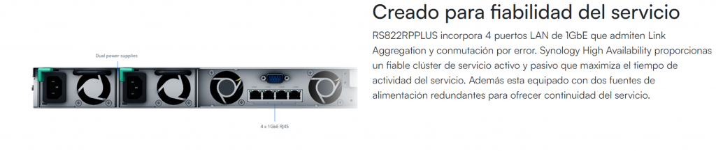 • 4 x RJ45 1GbE (soporta Link Aggregation y/o FailOver)