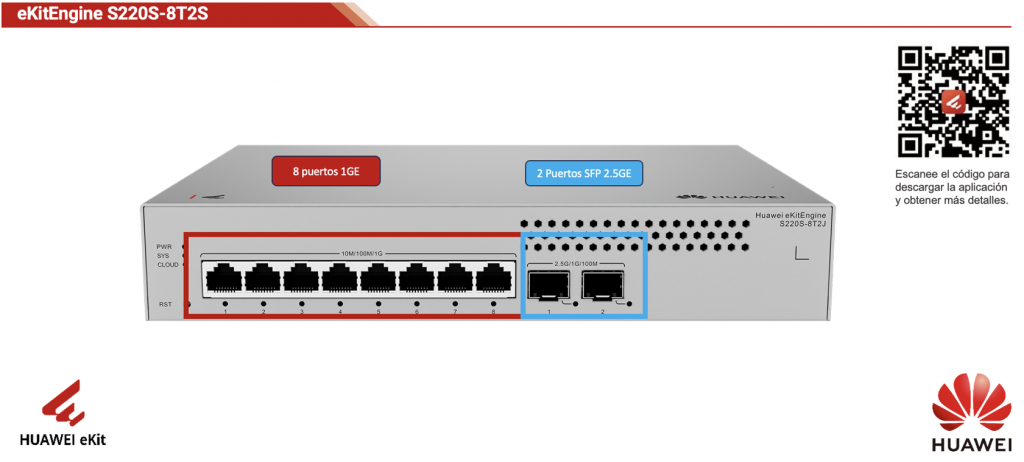 • Puertos: 8 x 10/100/1000BASE-T, 2.5GE SFP.