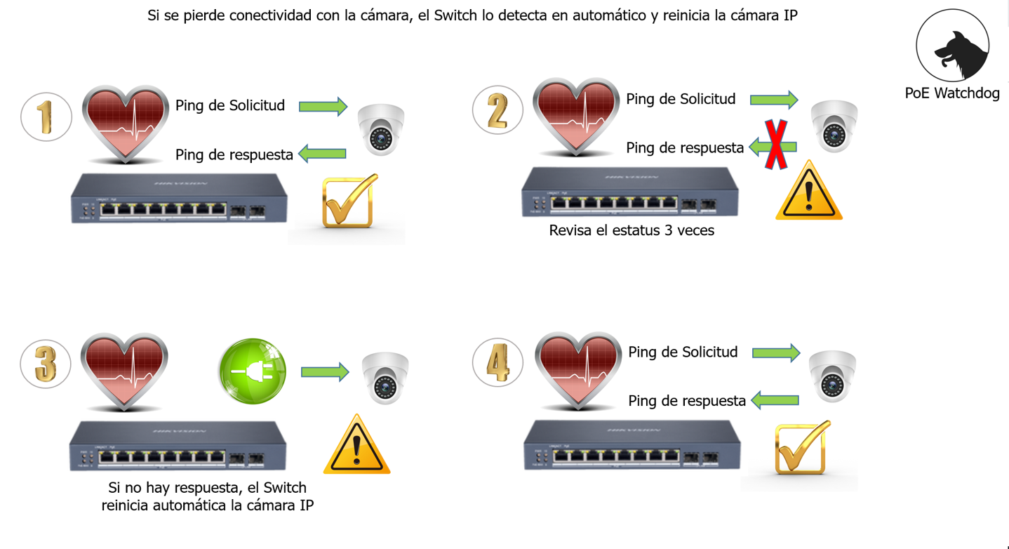 PoE Watchdog para detectar inactividad y reiniciar automáticamente las cámaras que no responden.