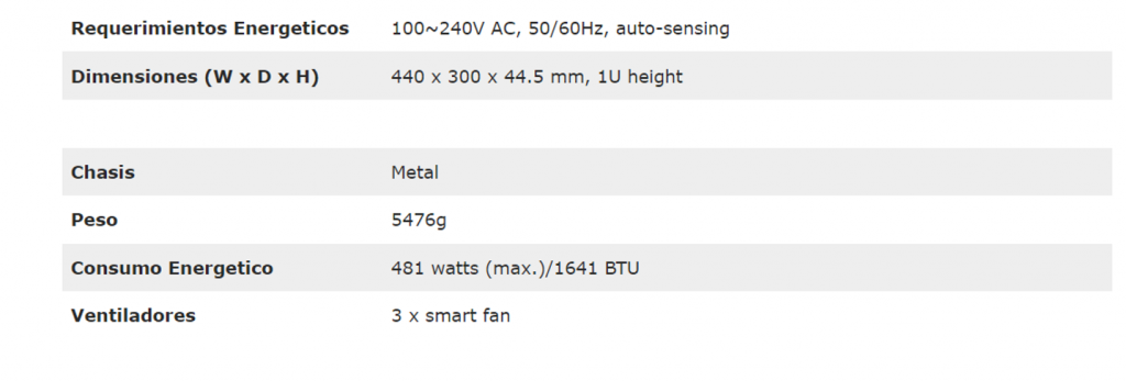 • Cumple con la norma IEEE 802.3at de alimentación a través de Ethernet Plus, lapso final del PSE