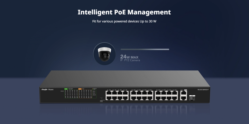 16 x 10/100/1000BASE-T PoE+ ports 2 x 1000BASE-X SFP ports