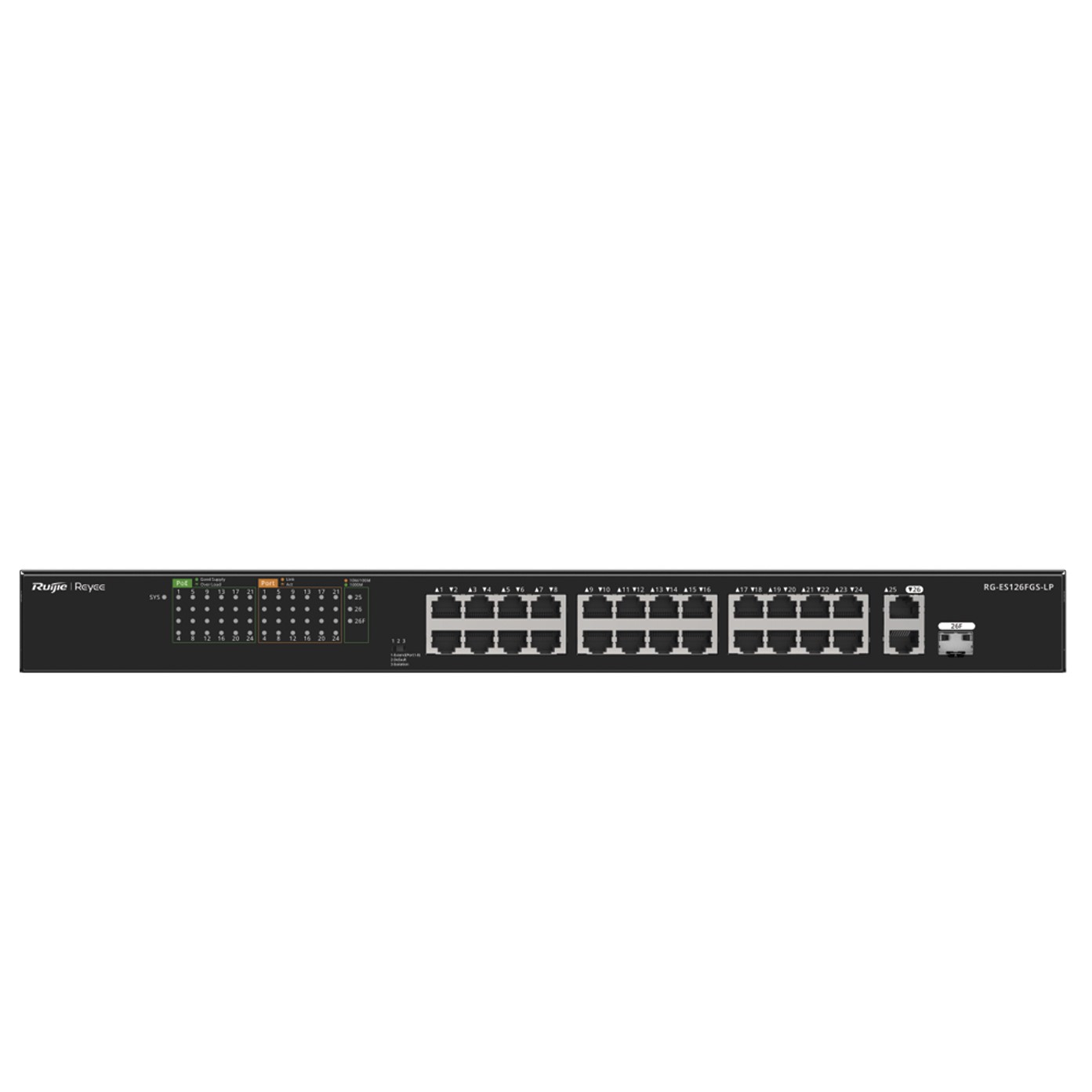 24 x 10/100BASE-T PoE+ ports 2 x 10/100/1000BASE-T ports 1 x combo port