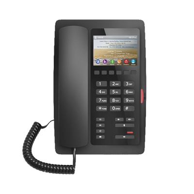 Fanvil H5 es una opción excelente y asequible para teléfonos IP de hotel, con una pantalla a color de 3,5 pulgadas y fácil de usar. El hotel podría personalizar la información (como la dirección del hotel, el logotipo, los números de teléfono relacionados, etc.) en la pantalla y brindar una mejor experiencia de vida a los huéspedes del hotel.