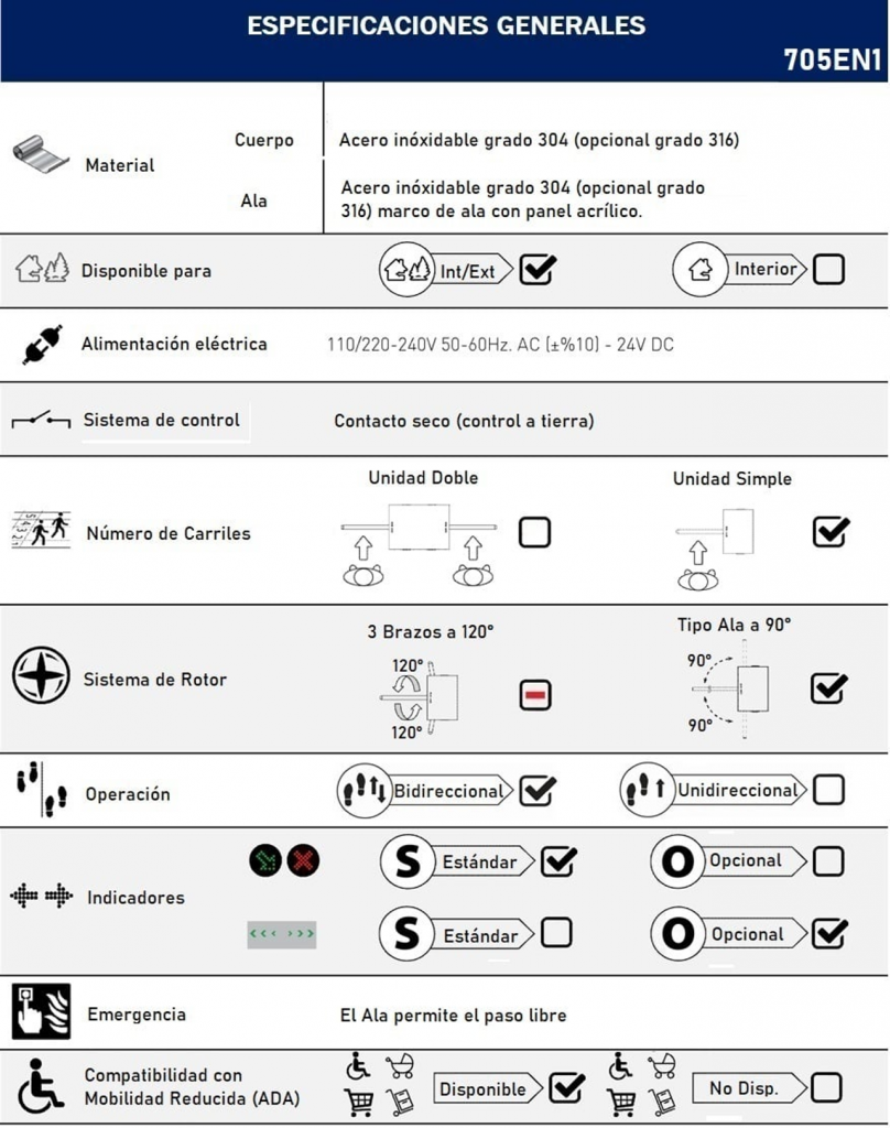 • Unidireccional o bidireccional, configurable en el torniquete.