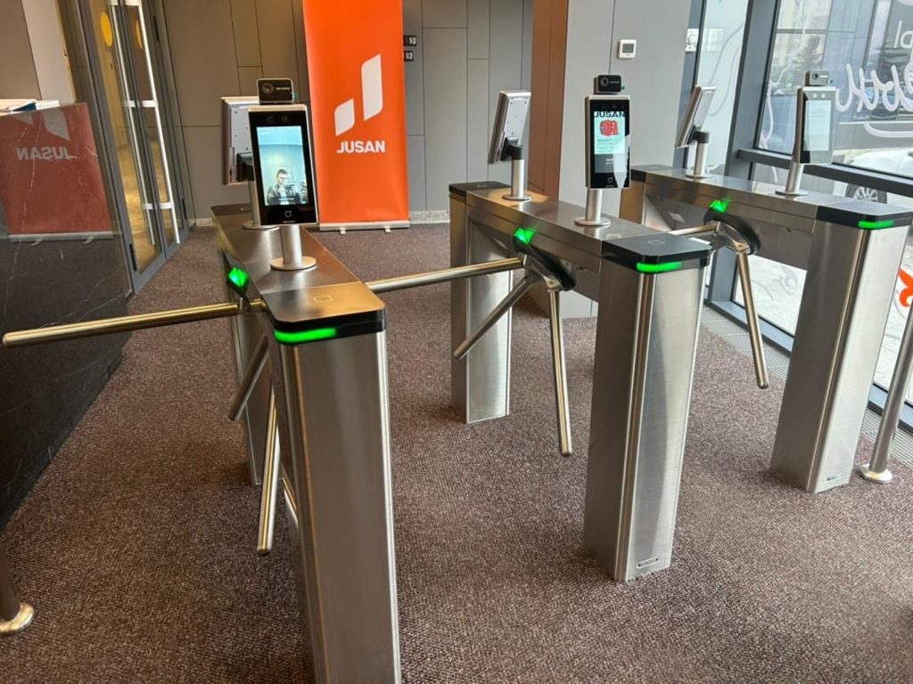 Utilizando el montaje DS-KAB6ZU1 + Terminal Facial Min Moe puede añadir reconocimiento facial, huella, QRs etc y administración en la nube a través de la terminal Min Moe y HikConnect Teams.