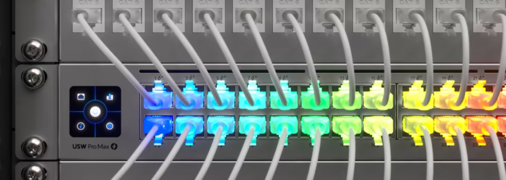 - 48 puertos UniFi, Capa 3 con Etherlighting™ 2.5 GbE y POE++